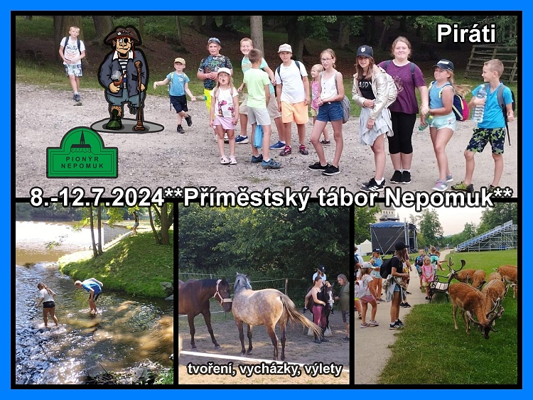 Červencový příměstský tábor (8.-12.7.2024) byl plný pirátů. Piráti se sešli na společné lodi, aby přepadli bohatého kupce, který poveze plnou truhlu zlata. Během celého týdne piráti sbírali indície, které jim napověděly, kdy a kudy popluje bohatý kupec. Být pirátem není žádná sranda. Každý pirát musel složit zkoušku zdatnosti. Kdo ji nesplnil, byl hozen žralokům. Bohužel zkoušku splnili všichni. Piráti se celý týden zdokonalovali v bojích, ale také ve vědomostech. Piráti se naučili, jak třídit odpad a jak se podílet na ochraně moří a okolních vod. Po získání poslední indície, se piráti vydali na určené místo, kudy měla kupecká loď plout. A povedlo se. Piráti bohatého kupce přepadli, obrali a poklad si rozdělili. Poté se vydal každý pirát svou vlnou k domovu.**LenkaS