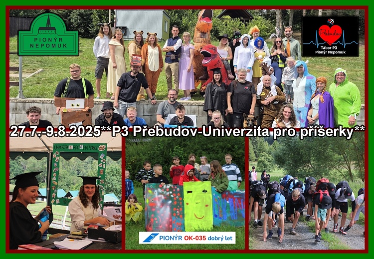 Třetí běh tábora v Přebudově 27.7.-9.8.2025 se letos proměnil v Univerzitu pro příšerky. Každý táborník dostal vlastní studijní index, do kterého během pobytu sbíral razítka - zápočty z jednotlivých dnů zasvěcených oblíbeným animovaným pohádkám. Na závěr pak všichni slavnostně získali titul Ph.D. – tedy Příšerka hrůzostrašných dovedností.Pokračovní článku po rozklikntí nadpisu**Jára Brejcha