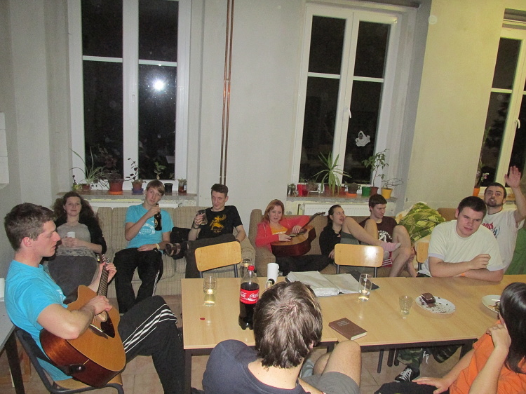 Večer jsme se sešli na večeři, povyprávěli si zážitky z cest, a, ač unaveni, odhodlali jsme se k zopakování hudební produkce a také k zopakování společenských her.