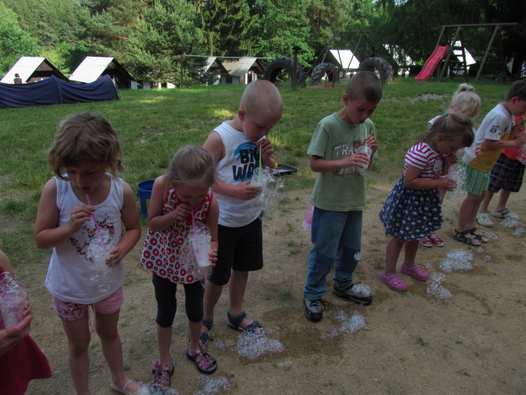 Největším překvapením pro děti byl příjezd dobrovolných hasičů z Nepomuka, kteří nám ukázali, jak se hasí požár a vyrobili pěnu, ze které byli děti nejvíce nadšené.