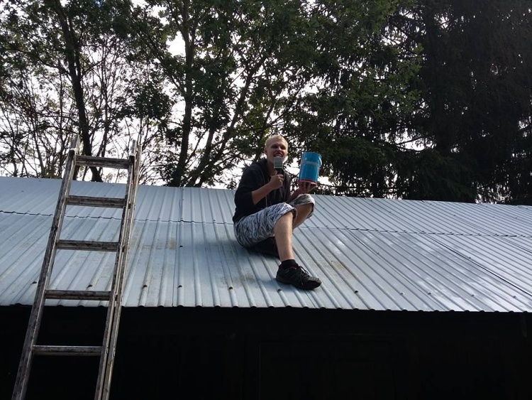 Po individuálním budíčku jsme si rozebrali náčiní a šli vykonat zadanou práci. Uklízelo se, přemisťovalo z místa na místo a natíralo. K dispozici bylo spousta barvy, ale celou střechu slepičárny jsme s ní nezvládli natřít. Přesto se natřela velká část, která na nás potom krásně svítila.