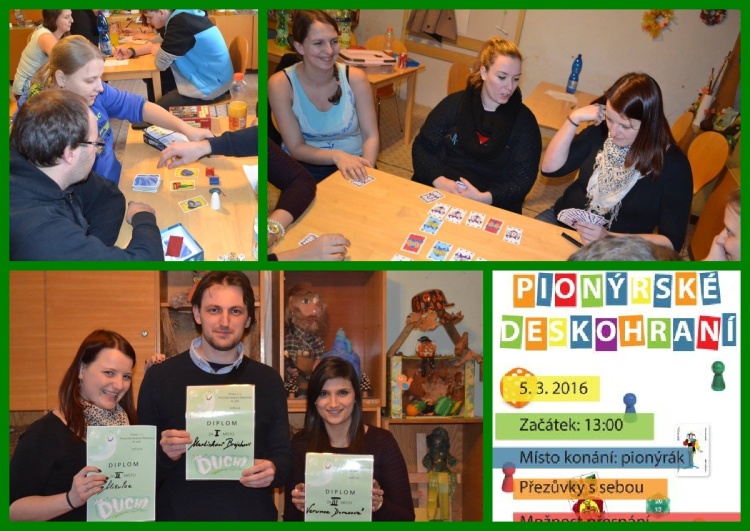 V sobotu 5. 3. 2016 jsme se opět setkali na klubovně, abychom si spolu zahráli deskové hry. Těch se na místě hrálo kolem 25 a ve třech se udělal turnaj; v piškvorkách, v Duchovi a v deskové hře 6 bere! Výsledky po rozkliknutí nadpisu.*JB