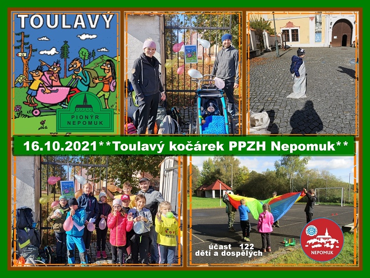 Tento turistický pochod se uskutečníl 16.10.2021 a organizuje ho KČT Nepomuk ve spolupráci s Pionýrem. Naším úkolem bylo zajistit pěší trasu pro děti a rodiče doplněnou o soutěžní stanoviště. Na trase Toulavý kočárek pod Zelenou Horou bylo 122 dětí a dospělých.