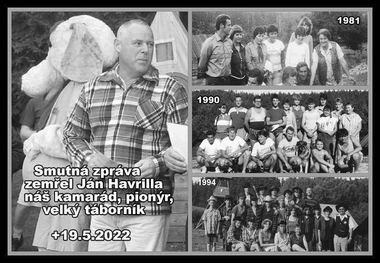 Ve čtvrtek 19.5.2022 zemřel náš kamarád, pionýr, velký táborník Ján Havrilla ve věku 68 let. Pocházel ze Slovenska a po ukončení vojenské základní služby se oženil a zůstal v Nepomuku. Již jako voják se zapojil do pionýra a byl vlastně jedním z těch, kdo po roce 1977 vybudoval pionýrskou základnu v Přebudově. Také tam moc rád jezdil a byl několik let hlavním vedoucím táborového běhu. Po roce 1990 byl vedoucím celé pionýrské skupiny. Dokázal vše zorganizovat, udělat, opravit a byl to náš velký kamarád. Smuteční rozloučení bude v Blatné 2.6.2022 v 10,30 h. Čest jeho památce.