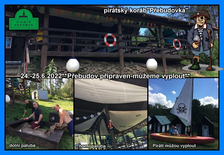 V pátek 24.6.2022 se sešel P0 na táborové základně v Přebudově. Po příjezdu a ubytování jsme se ihned pustili do sekání, než začalo pršet. V sobotu dospěláci sekali trávu, uklízeli základnu, vyklidili nářaďovnu, vyrobili nové pískoviště pro děti, uklidili kuchyň a připravovali tábor na letní sezónu. V neděli dopoledne jsme vyzdobili základnu a už se těšili na první táborníky. Moc děkujeme holkám z kuchyně za celovíkendovou stravu.**Martin B.
