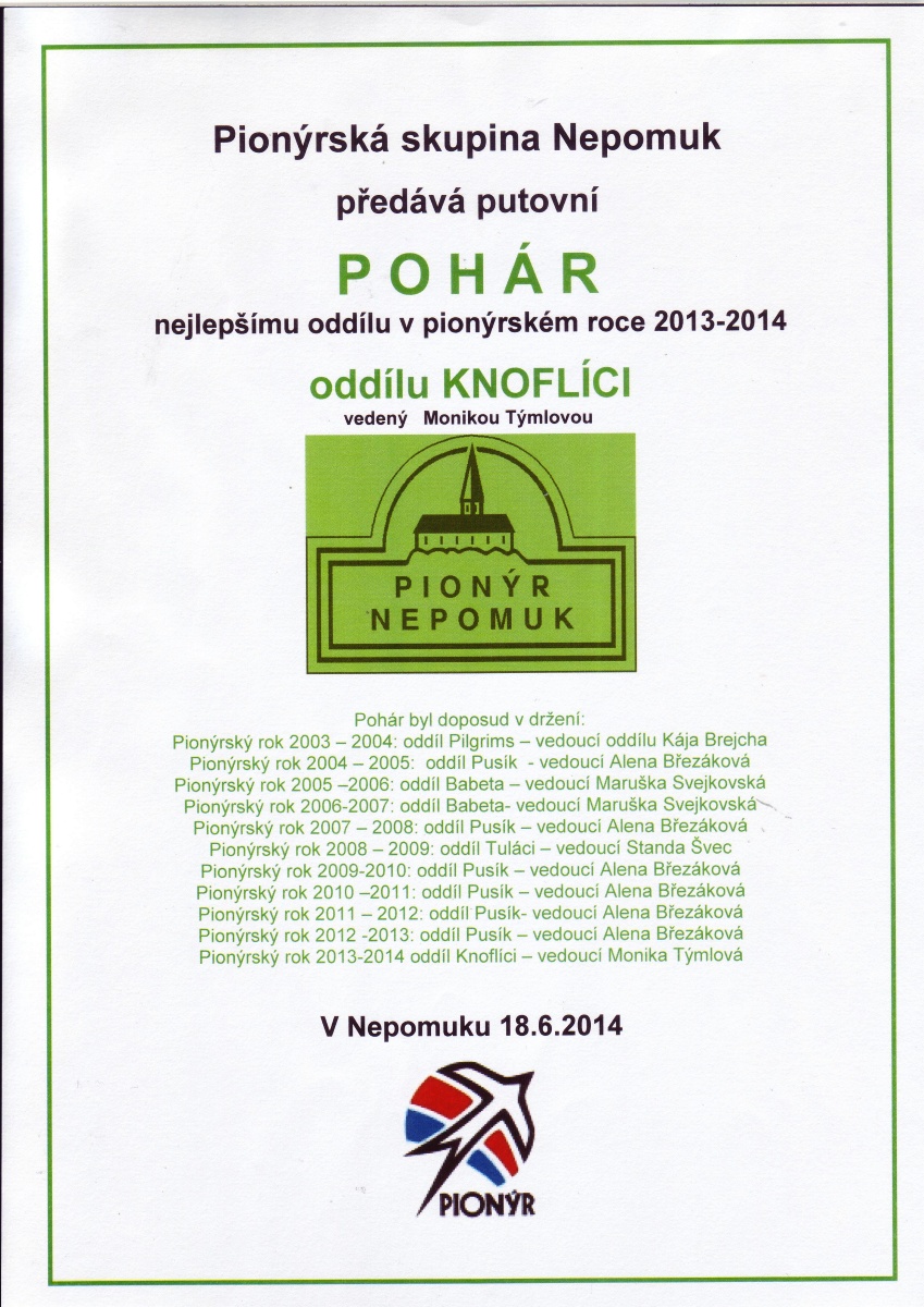 Naše dětská organizace Pionýr připravuje a organizuje volný čas dětem a dospělákům v malém městečku jižně od Plzně.