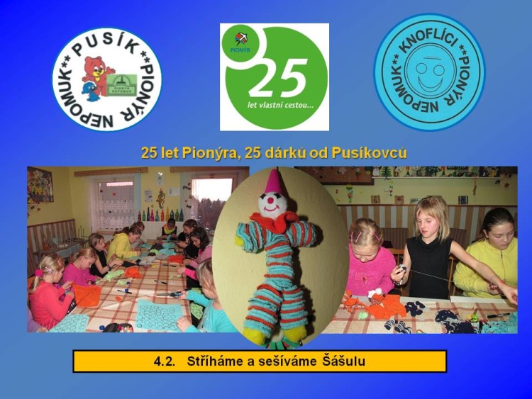 Naše dětská organizace Pionýr připravuje a organizuje volný čas dětem a dospělákům v malém městečku jižně od Plzně.