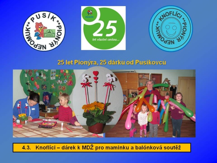 Naše dětská organizace Pionýr připravuje a organizuje volný čas dětem a dospělákům v malém městečku jižně od Plzně.