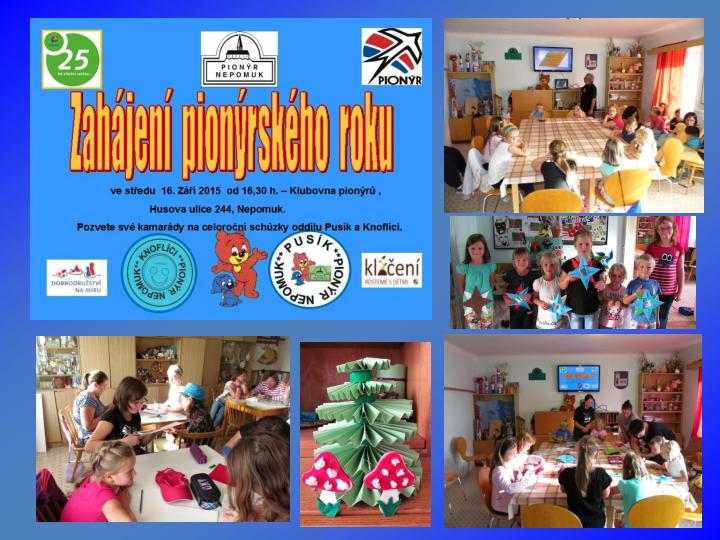 Naše dětská organizace Pionýr připravuje a organizuje volný čas dětem a dospělákům v malém městečku jižně od Plzně.