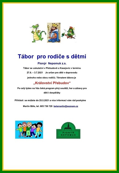 Pionýrská skupina Nepomuk připravila pro léto 2025 šest táborových běhů, tábor rodičů s dětmi a tři příměstské tábory.. O přihlášky na tábory si můžete napsat nebo zavolat na kontakty uvedené v letáčku. img